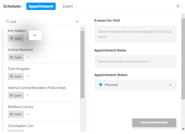 Select the plus sign ➕ next to their name to open the Add Client's First New Patient window.