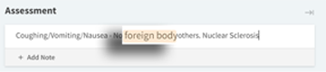 In any section in which you can write freely, you will notice that any symptom, diagnosis, or procedure is highlighted. This color-coding highlights anything medically interesting to stand out to your eye.