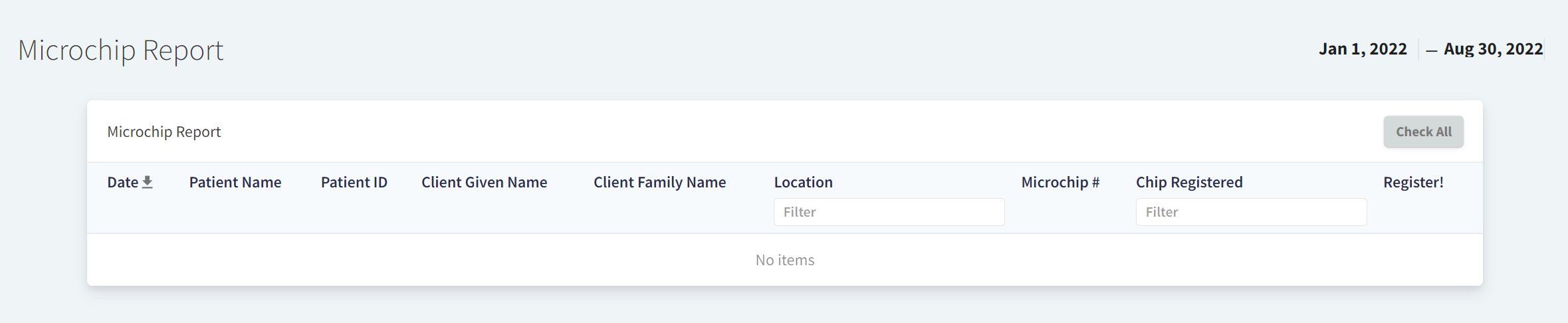 Navigate to Financials > Advanced > Microchip Report on the left-hand side of the screen. This page is based on the location, not the organization.