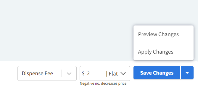 Select the arrow next to the Save Changes button, then select Preview Changes. The system will then download a CSV file of the affected products.