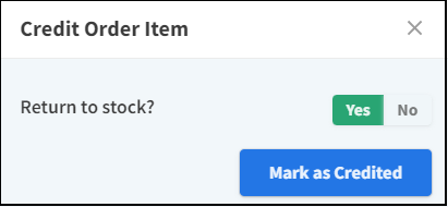In the Credit Order Item window, set Return to stock? to Yes or No: