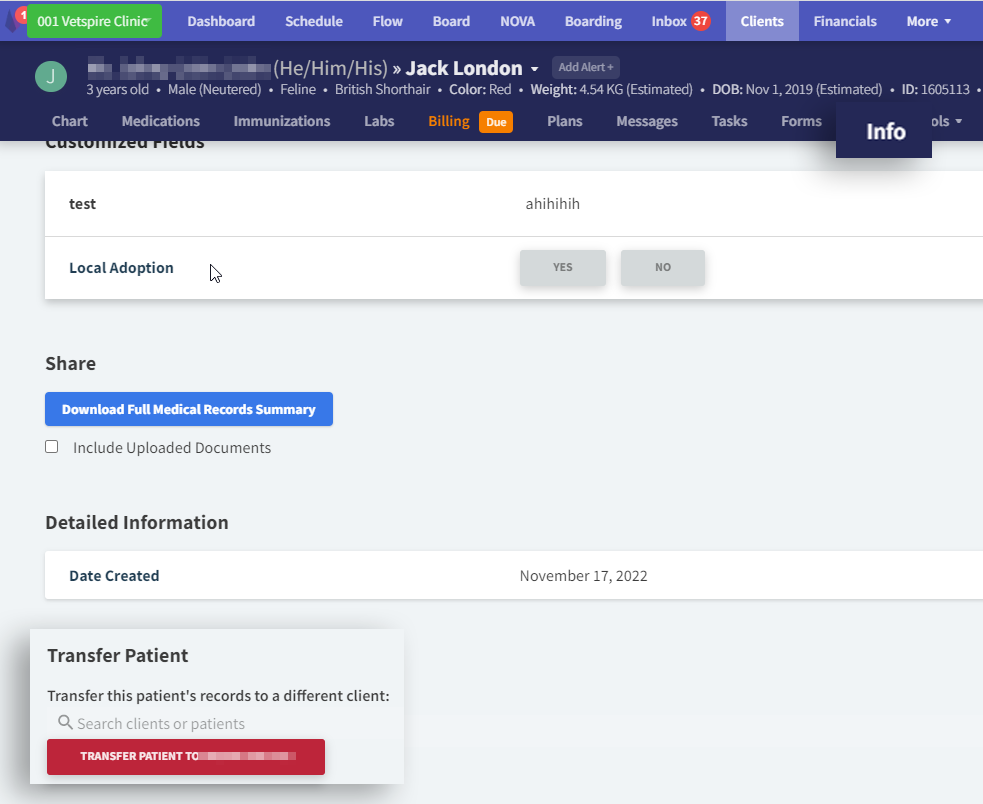 The patient’s chart will open under the new client’s account.