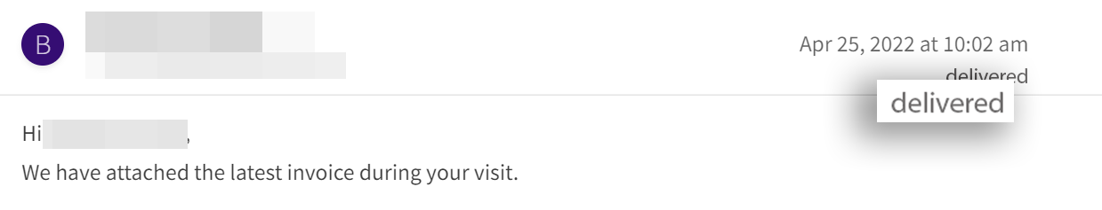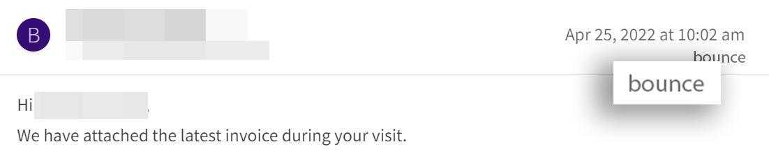 Emails in Inbox, accessed from Global Navigation, display a delivered indicator if the message was sent successfully or a bounce indicator if the message could not be delivered.